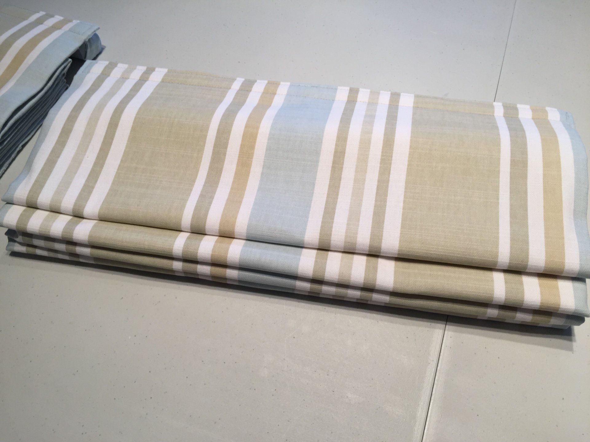 The roman blinds I make are lined as standard, from a choice of either cotton lining or blackout lining, and interlining can also be added which gives more body to a lightweight fabric choice. I attach the lining to the main facing fabric by hand, so there are no lines of unsightly machine stitching across the front of the blind. The only visible machining stitching is for joining fabric widths on a wide a blind; for attaching Velcro (which is not seen) at the top of the blind, and for creating the rod pockets on the lining fabric.