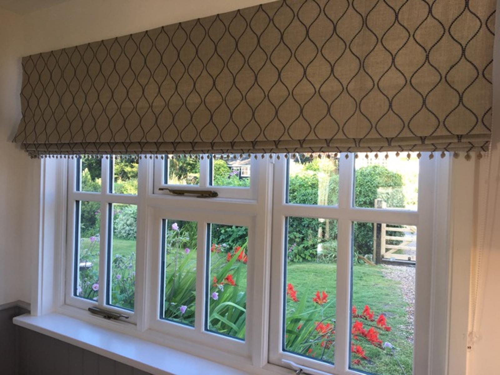 Whilst Roman blinds are an effective way of displaying fabric to its full effect, trimmings such as a bead or pom-pom trimmings, braid, and contrasting borders can also be used to add extra embellishments.